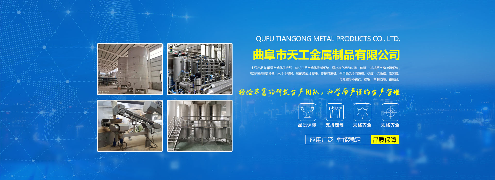 曲阜天工金屬制品有限公司專業生產、銷售不銹鋼酒罐、不銹鋼發酵罐、不銹鋼釀造設備等,并提供產品相關圖片、報價、參數等信息。